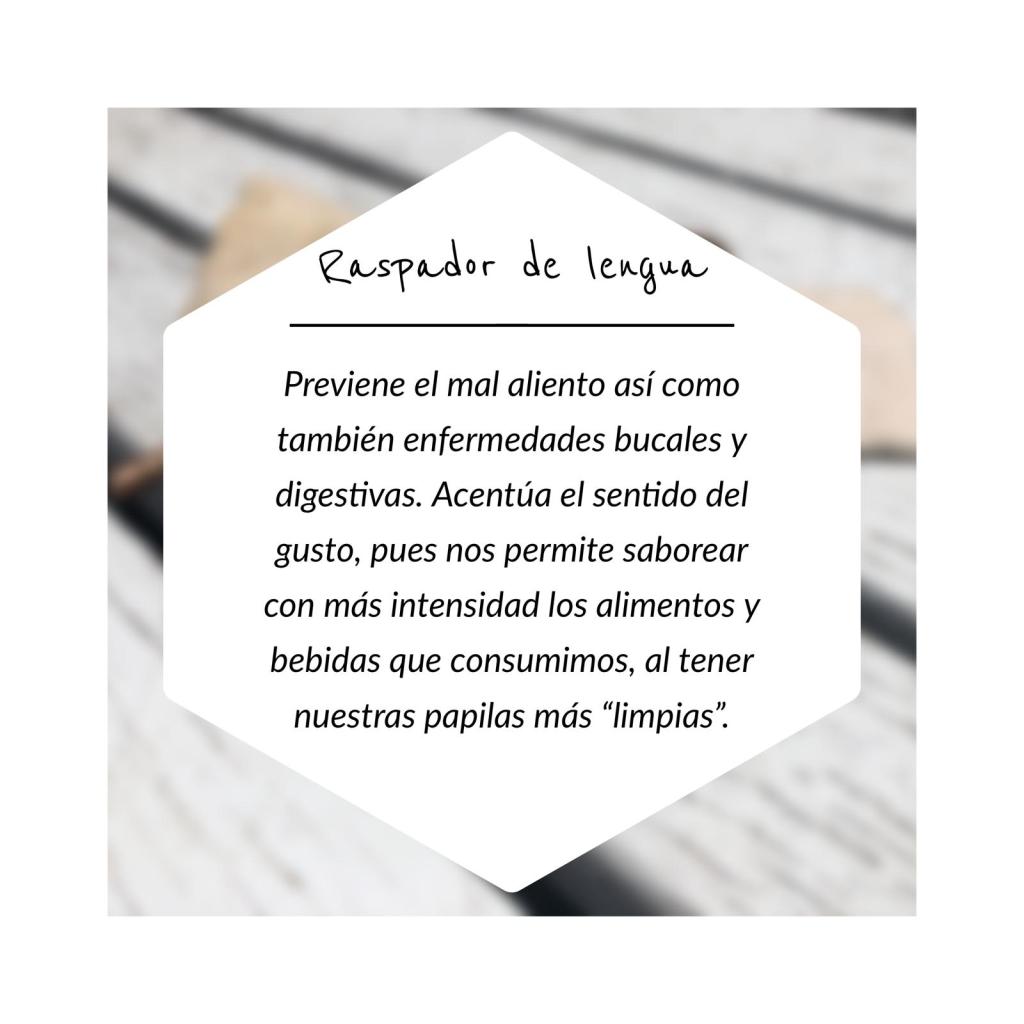 El raspador de lengua ayuda a eliminar las toxinas y células muertas que hay sobre nuestra lengua, por restos de alimentos que pueden quedar incluso luego de la higiene bucal, procesos digestivos (los cuales se inician en la boca), dormir con la boca abierta durante la noche, entre otros factores, y por el proceso natural de eliminación de toxinas que tenemos mientras dormimos.