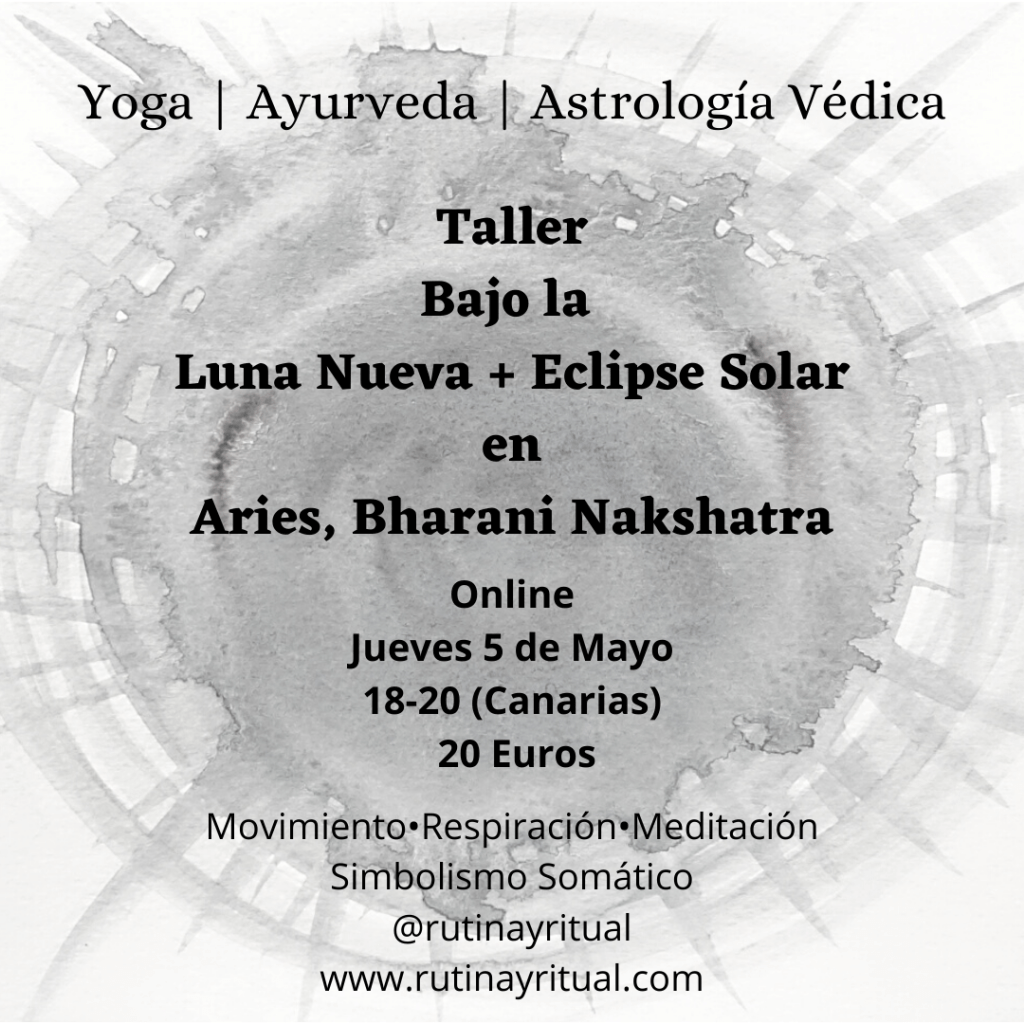 TALLER BAJO LA LUNA NUEVA + ECLIPSE SOLAR EN ARIES, BHARANI NAKSHATRA